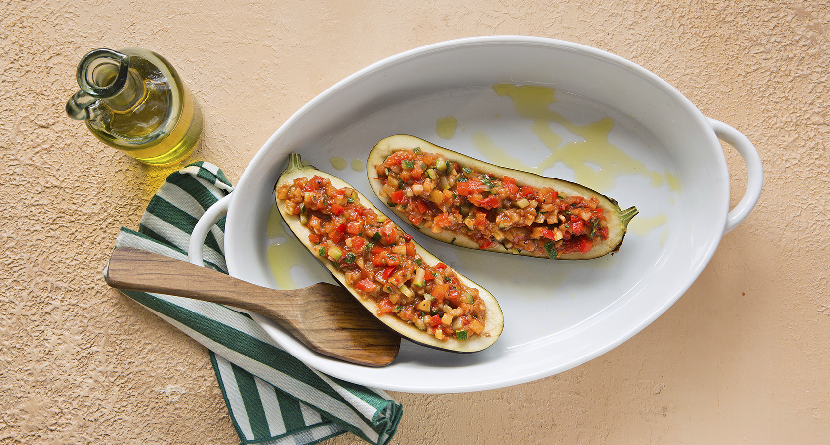 Шаг 5 Баклажаны выложите в жаропрочную форму, нафаршируйте приготовленными овощами, посыпьте моцареллой и запекайте на среднем уровне духовки 45–50 мин, подавайте горячими, посыпав петрушкой.